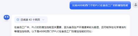 與此同時,食品廠的設備工程師David不再瀏覽技術論壇,而是向Kimi發出指令:”比較ABB和西門子的PLC在食品工廠的防腐蝕性能”。